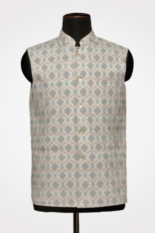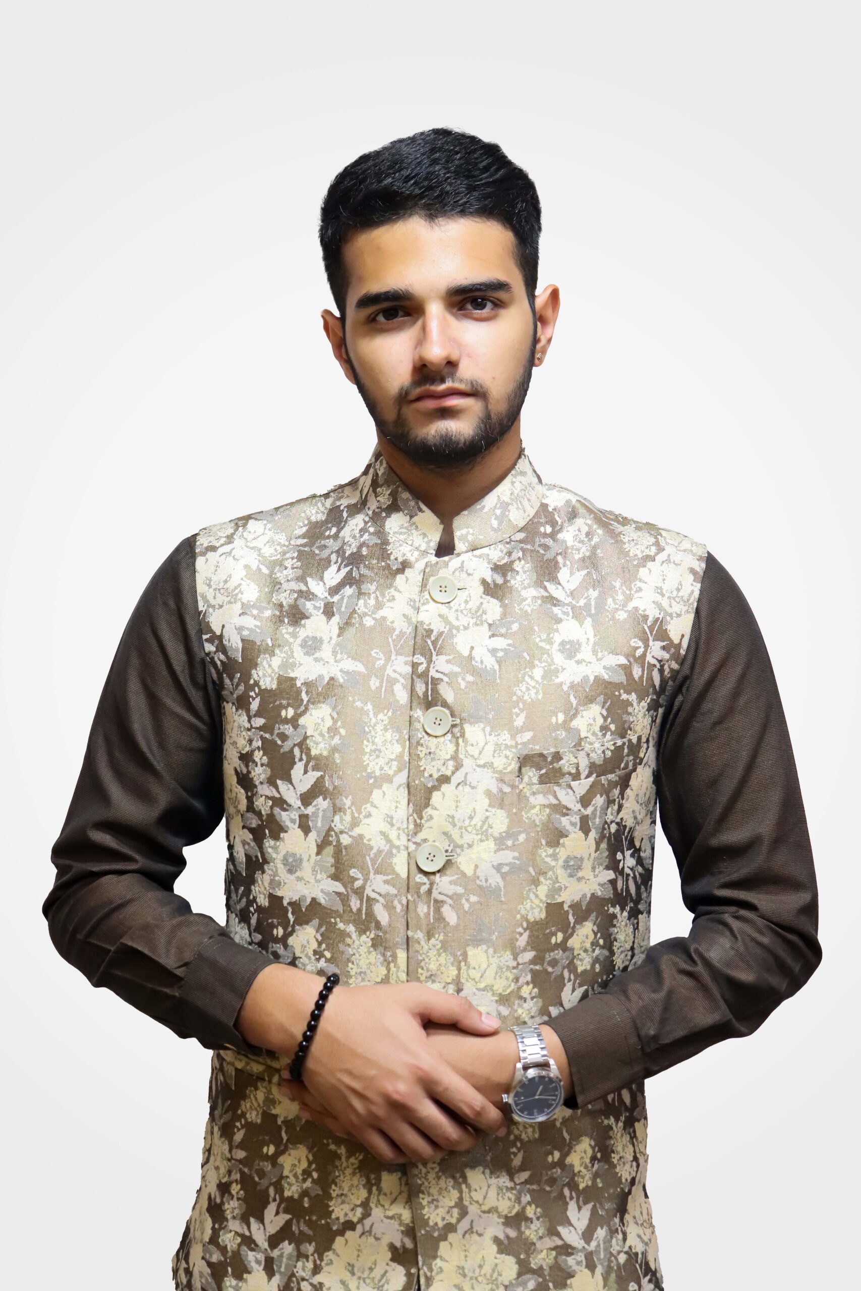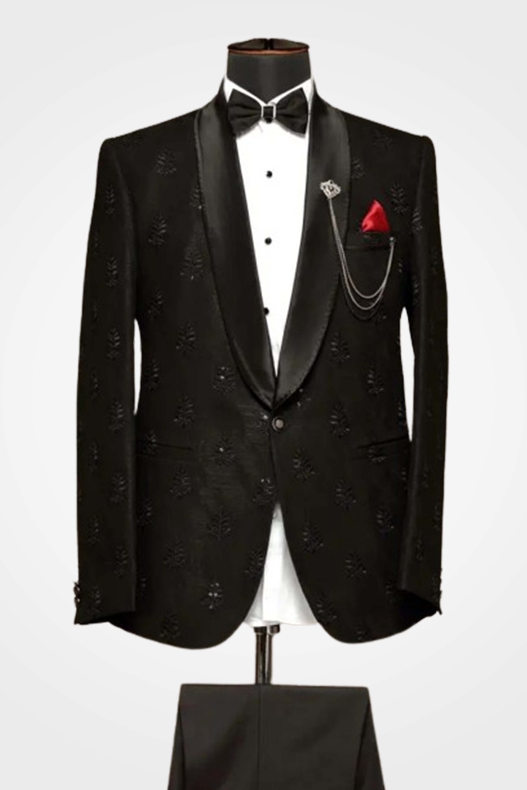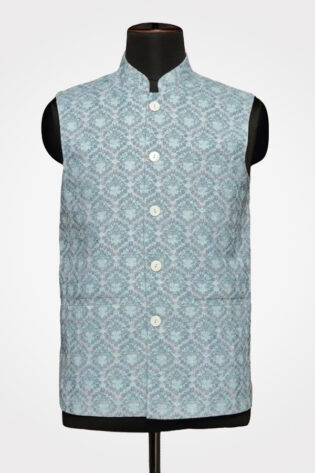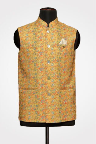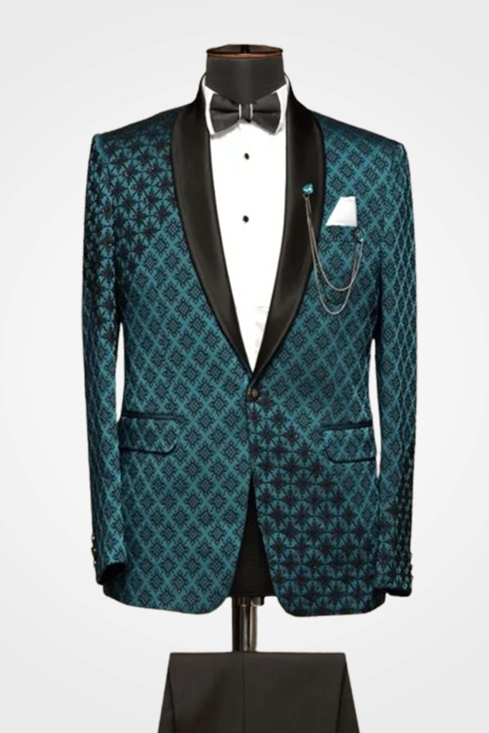 Designer Printed Velvet Blazer with Black Velvet Collar